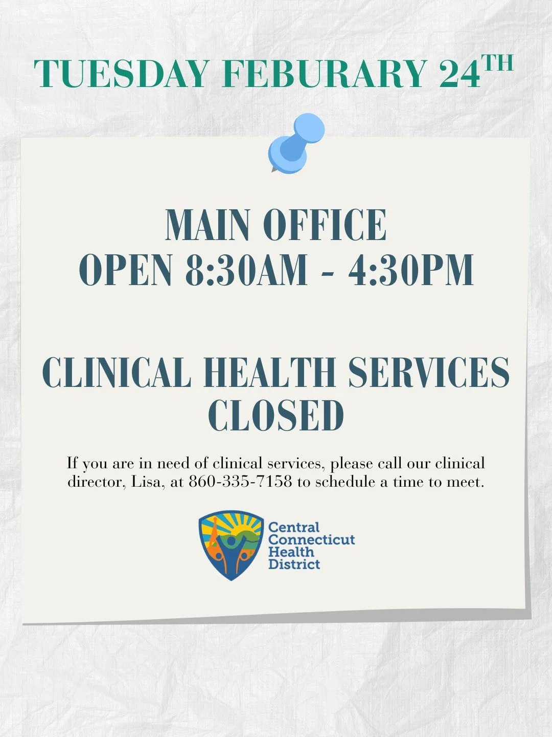 The Clinical Health Services team provides care at our Clinical Health Services location: 506 Cromwell Ave, Suite 202 in Rocky Hill. Services provided include: vaccinations, health education, health screenings & substance use disorder (SUD).